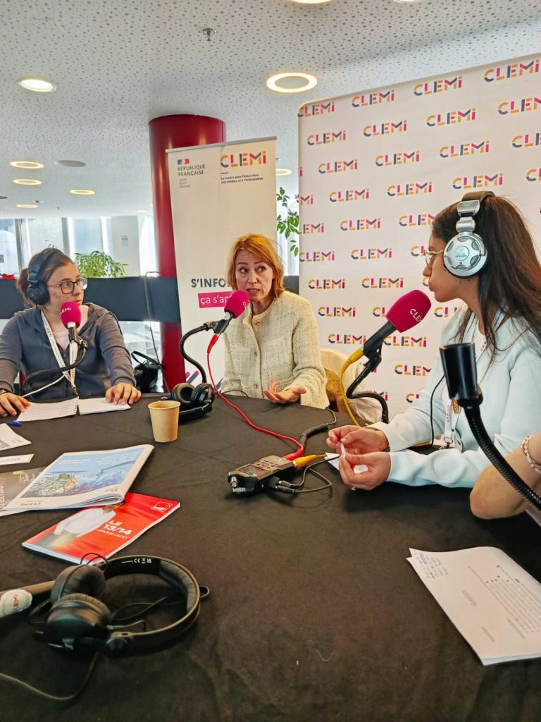 Dans le cadre de la semaine de la Presse, le CLEMI nous a proposé (Madame Bosseaux et Madame Jumelais) d’accompagner les élèves de Clouet FM (club radio du lycée) à la maison de la Radio. Hind, Arwa, Camille, Fatima et Fayza ont pu à cette occasion interviewer des journalistes de France Inter : Jérôme Cadet et Charline Vanhoenacker, Carina Chatain de la CNIL et Noé Da Silva de France Info. On remercie Thomas Rouchié entre autres, pour cette journée dense et riche. Les élèves étaient enchantées (leurs profs aussi) et les journalistes les ont félicitées. Une réussite !